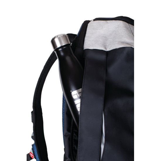 - Expandable side pocket for a water bottle.